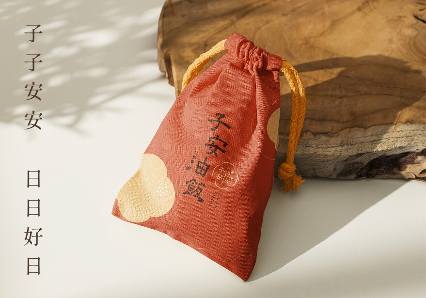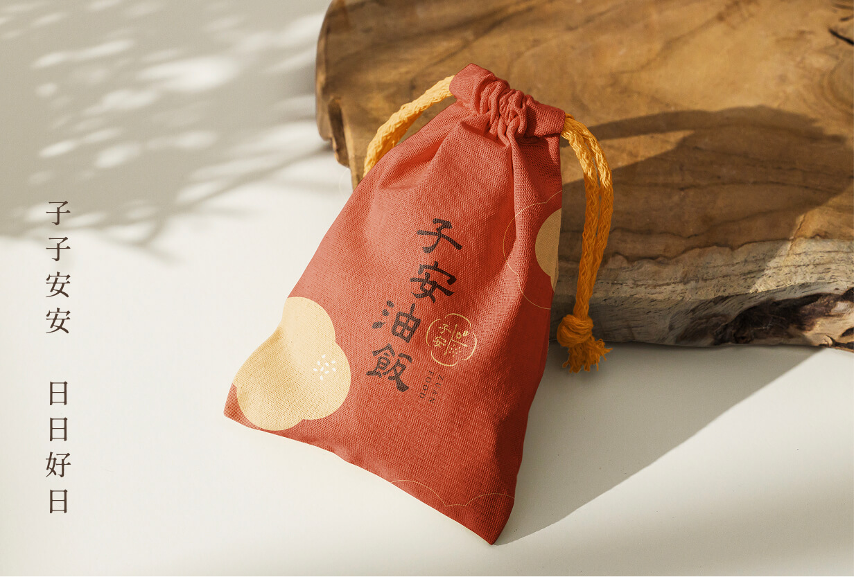 我們取名「子安」,取其「平安、圓滿」之意,願每一份送出的油飯,不只是飽足,更是心意的延續。品牌標誌以護身玉佩為靈感,結合紅蛋與稻米意象,象徵祝福與生命的延續。