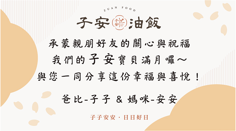憑媽媽手冊在IG、FB任一個子安油飯粉絲頁按讚+分享任一貼文,即可免費試吃一斤裝的香菇油飯。趕快私訊我們詢問哦!