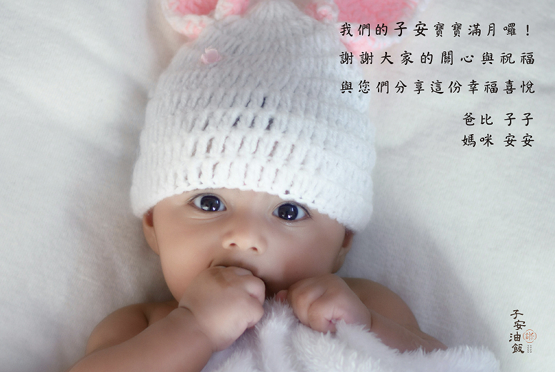 高品質印刷的彌月小卡:無色差、無毛邊、裁切大小一致,材質較好、清晰度也較高(單次印刷最少200張、300張)